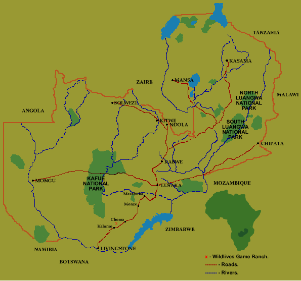 | Bowhunters is based on a private game ranch (Wildlives) which is in the Southern Province of Zambia , Africa.We are 155km from the mighty Victoria Falls - one of the seven wonders of the world. Our capital city, Lusaka is 370km to our North East. Lake Kariba is 150km to our South East and is home to the famous tiger fish whom one may try his hand at, should he so wish. |